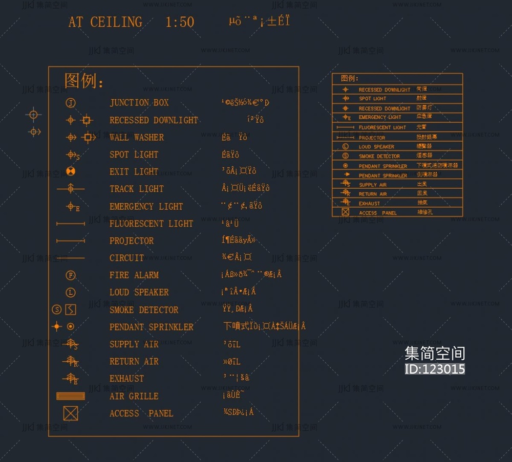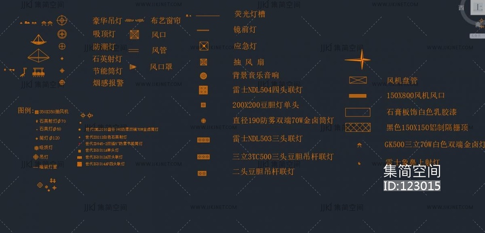 天花各类灯具,空调,风口图例大全cad施工图下载 [ID:123015]
