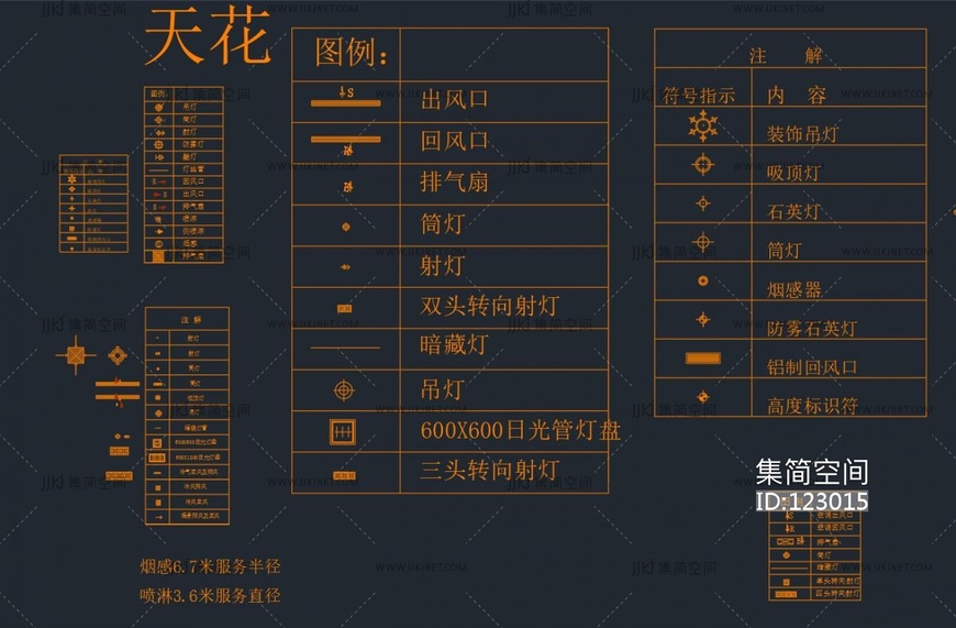 天花各类灯具,空调,风口图例大全cad施工图下载