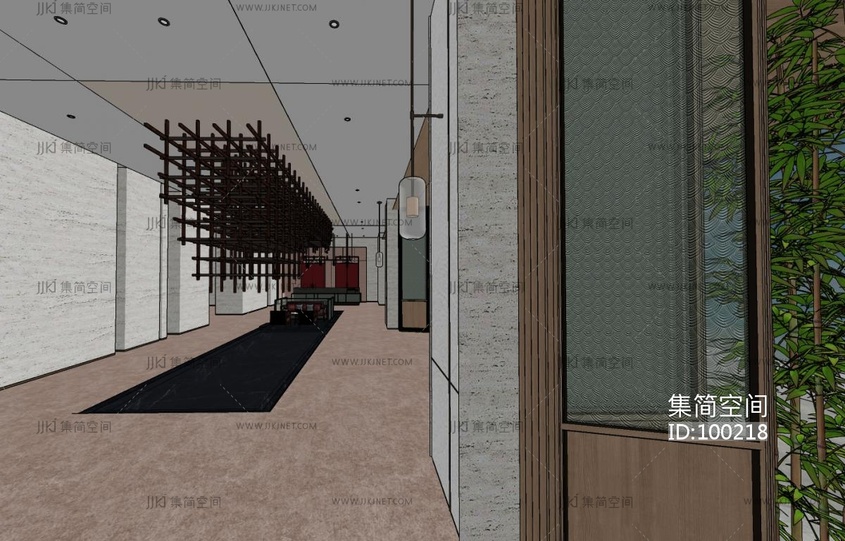 新中式酒店大堂 su草图模型下载 [模型ID:100218]