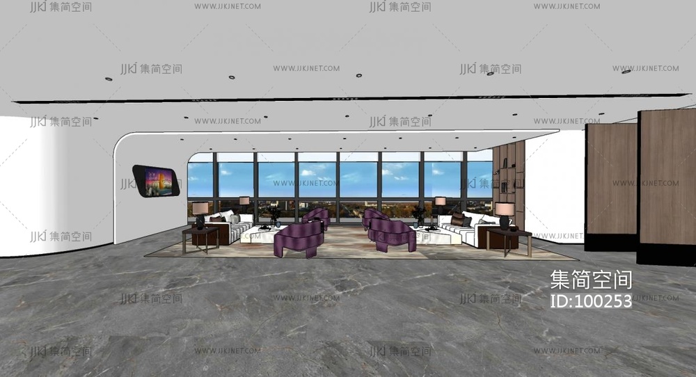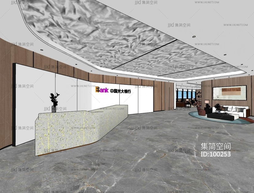 现代光大银行总部前台接待室 su草图模型下载 [模型ID:100253]