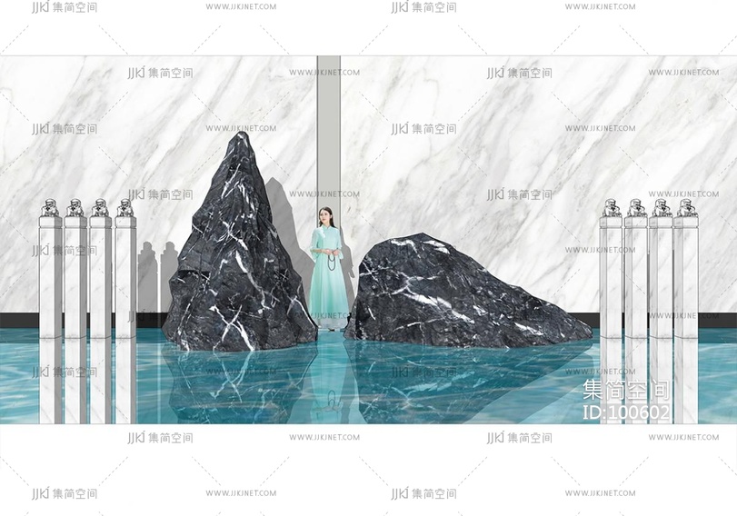 02新中式景观石头拴马桩,石狮子旗袍剪影人物 su草图模型下载 [模型ID:100602]