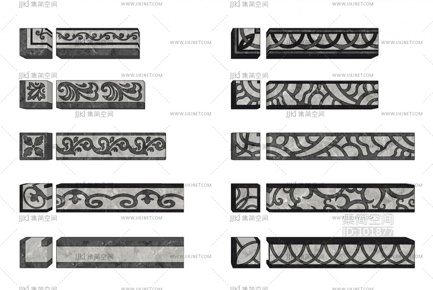现大理石腰线,圈边大理石石材拼花 su草图模型下载 [模型ID:101877]