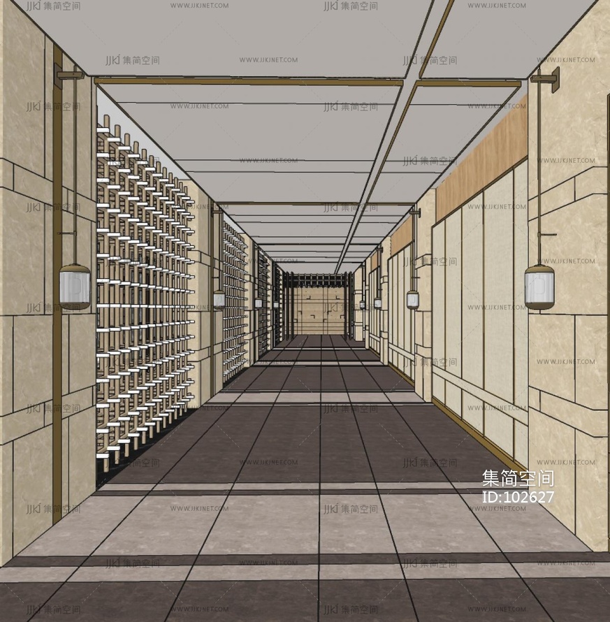 现代轻奢酒店走廊过道 su草图模型下载 [模型ID:102627]