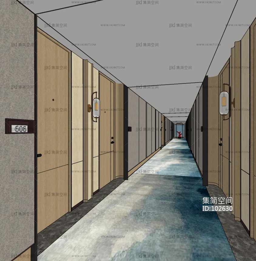现代酒店客房过道,走廊 su草图模型下载 [模型ID:102630]