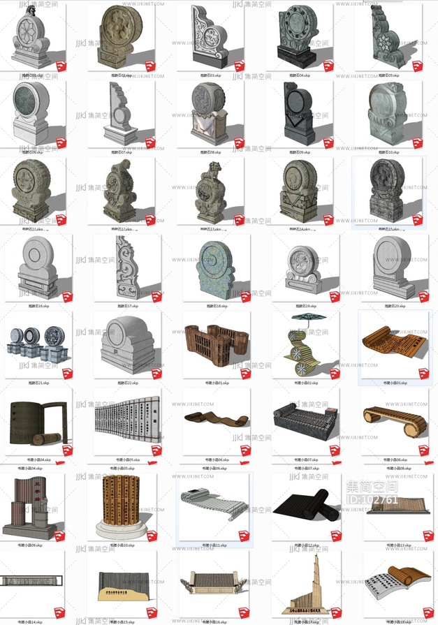 中式竹简书简抱鼓石,雕塑 su草图模型下载 [模型ID:102761]