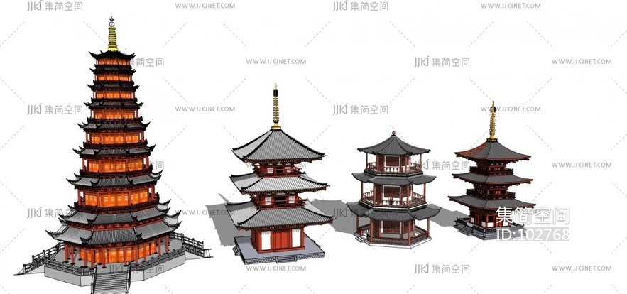 中式古建筑塔楼寺庙建筑,古塔 su草图模型下载 [模型ID:102768]