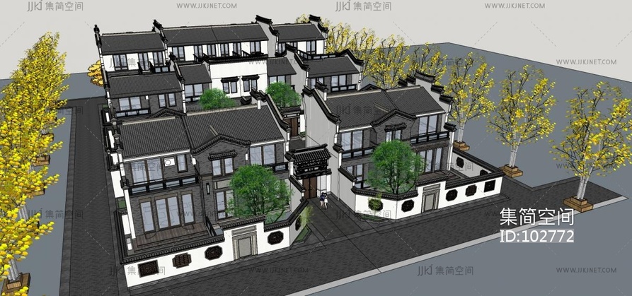 11中式徽派建筑四合院,度假村特色乡村 su草图模型下载 [模型ID:102772]