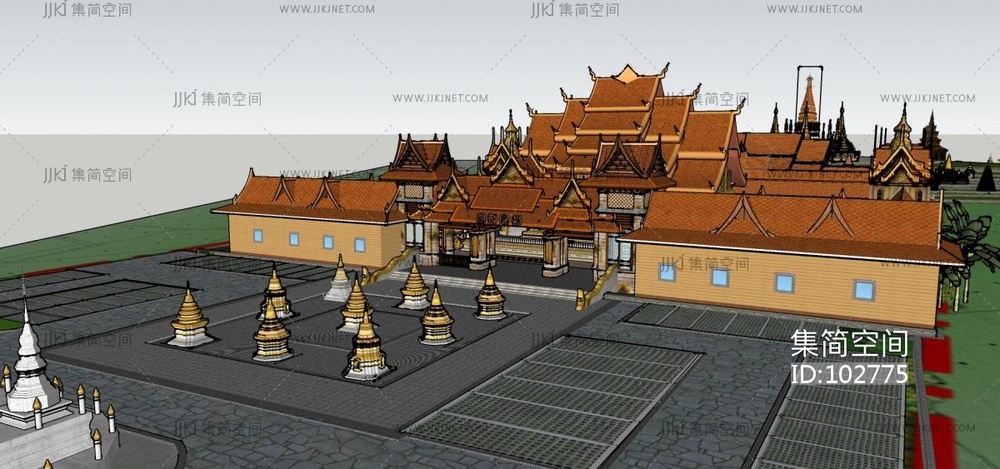 14东南亚泰式寺庙古建筑,塔楼 (1) su草图模型下载 [模型ID:102775]