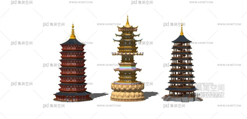 中式古建塔楼佛塔,莲花台 su草图模型下载 [模型ID:102776]