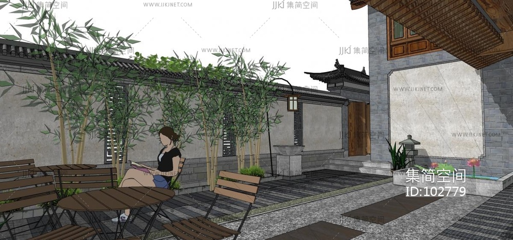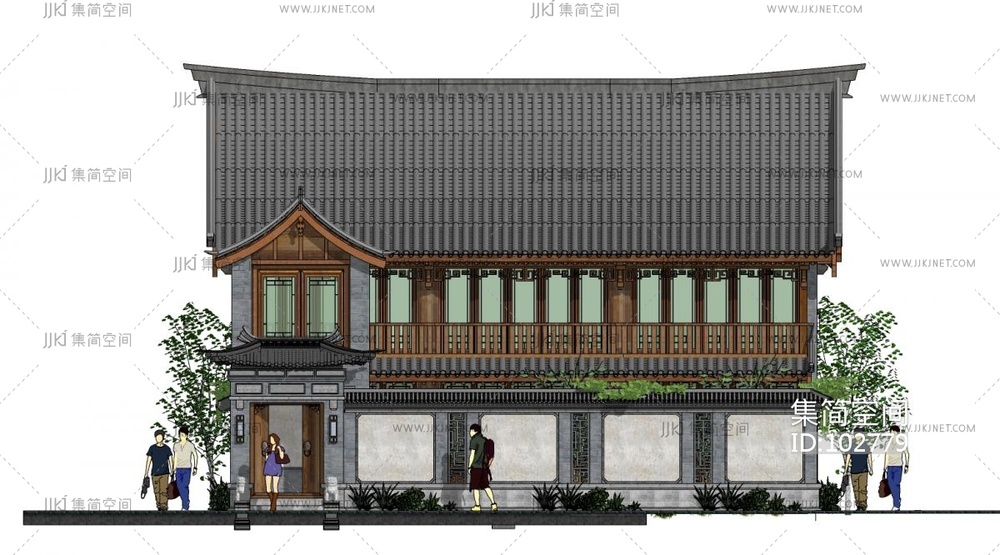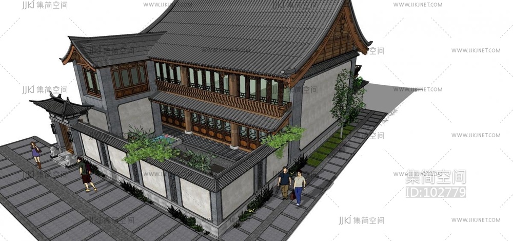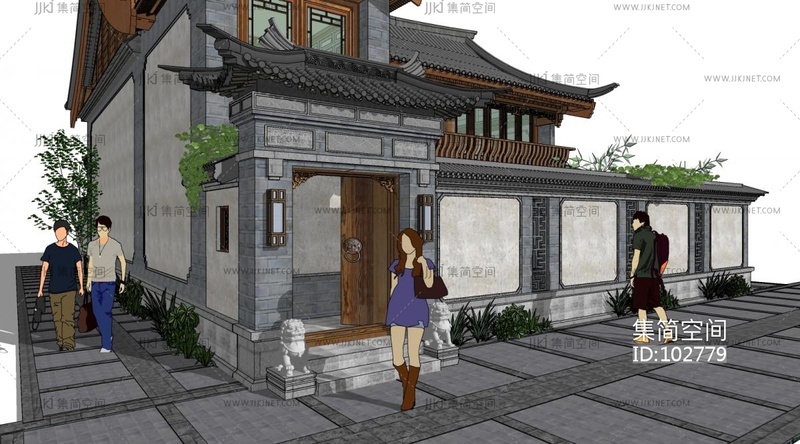 18中式古建四合院院墙门头大门,入口大门 (1) su草图模型下载 [模型ID:102779]