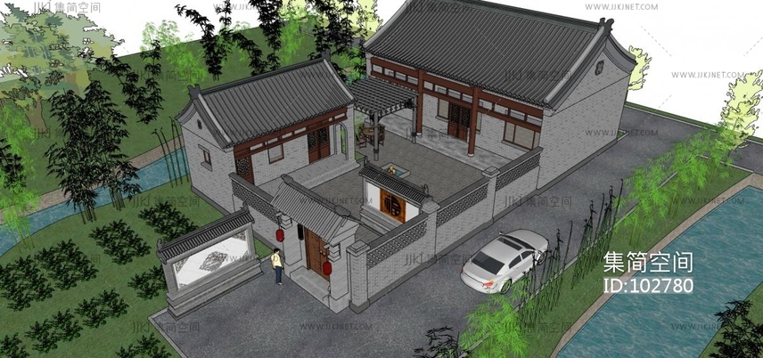 中式古建四合院大门门头 su草图模型下载 [模型ID:102780]