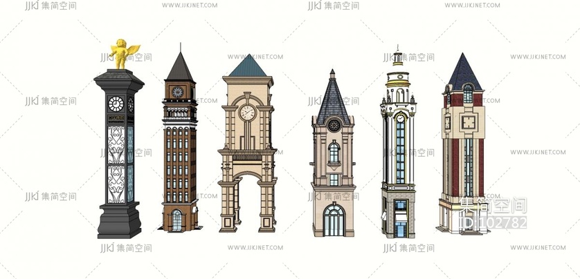 09中式欧式法式古建钟楼塔楼su模型su草图模型下载