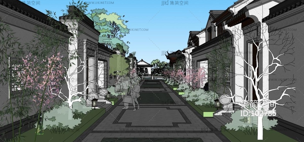 中式庭院民宿建筑su草图模型下载