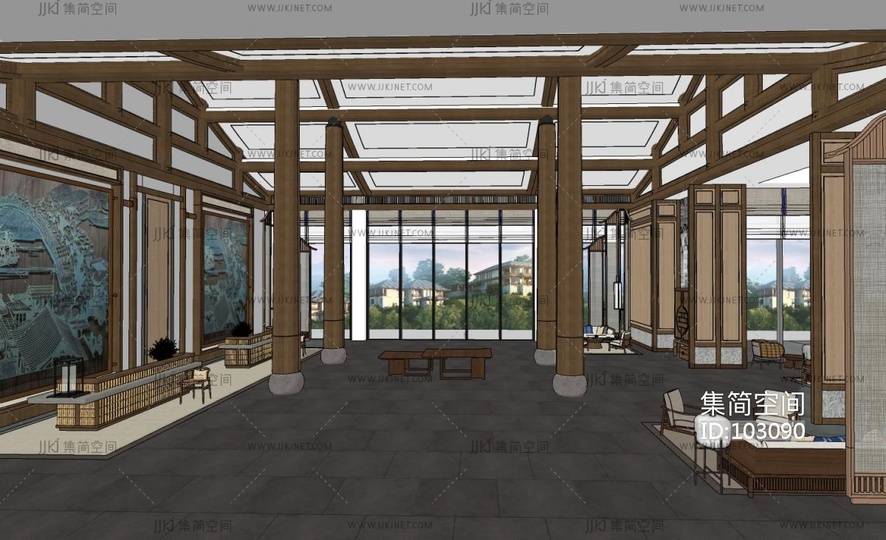 新中式酒店大堂 su草图模型下载 [模型ID:103090]