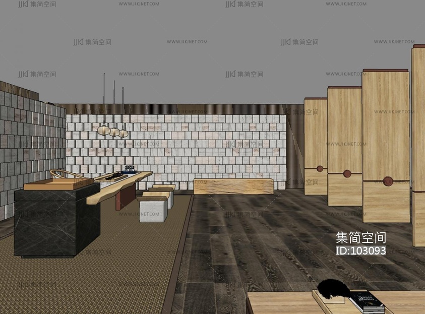 新中式酒店大堂接待处卡座SU模型su草图模型下载