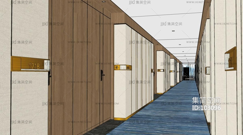 新中式酒店客房走廊 su草图模型下载 [模型ID:103096]