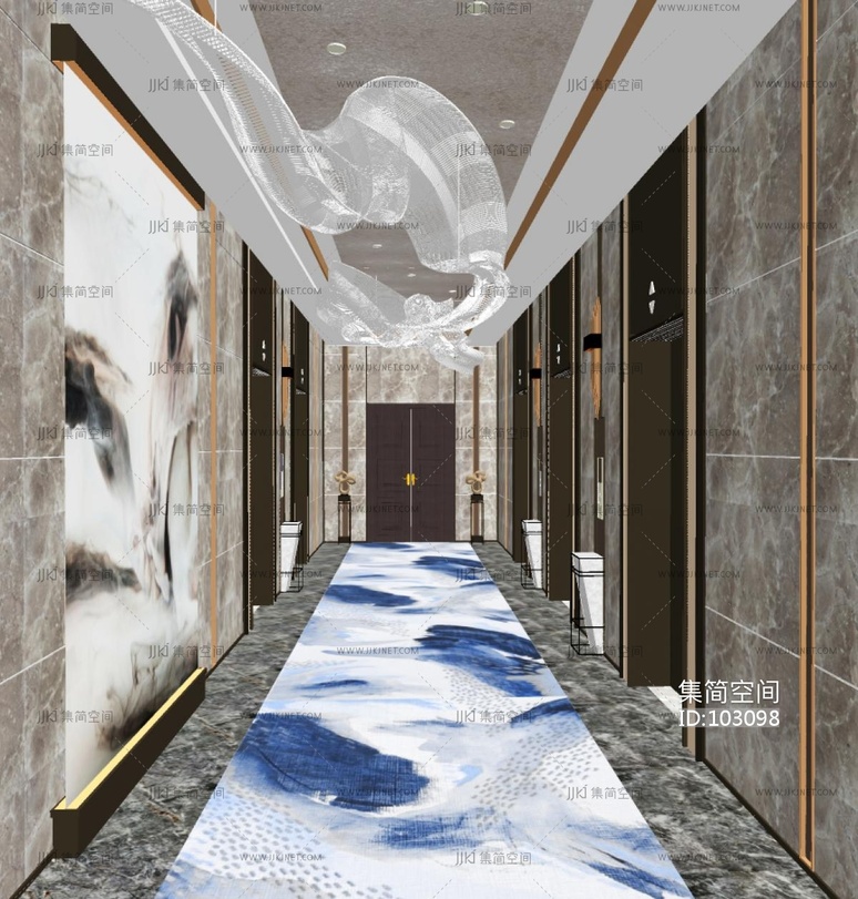 现代酒店电梯厅,电梯间 su草图模型下载 [模型ID:103098]