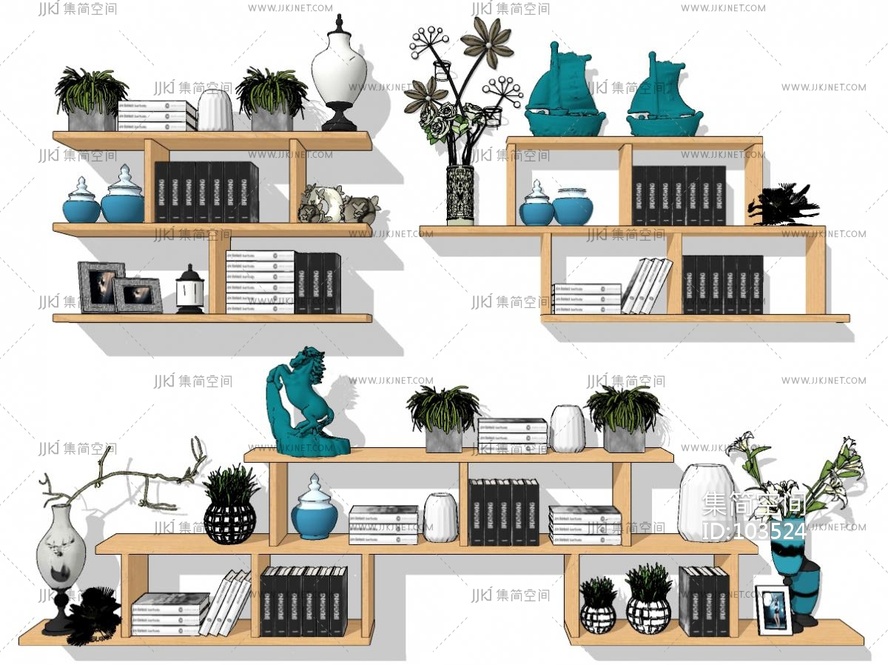 现代置物架_现代墙面置物架_书架_壁挂式SU模型su草图模型下载