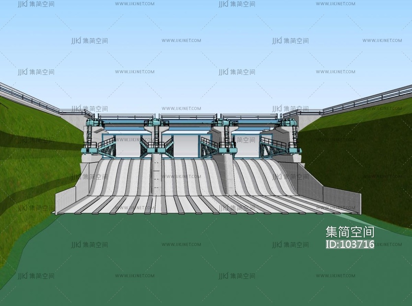 现代堤坝 ,水库 ,水闸 su草图模型下载 [模型ID:103716]