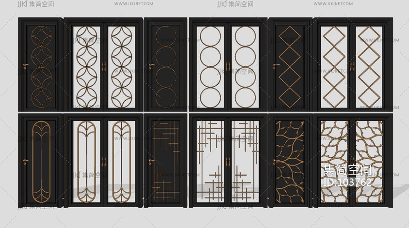 现代新古典欧式推拉门组合 su草图模型下载 [模型ID:103762]