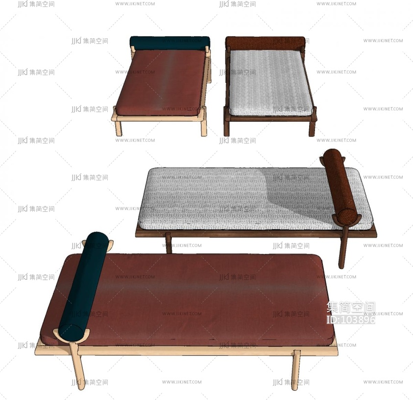 现代单人床 ,北欧风单人沙发凳 su草图模型下载 [模型ID:103896]