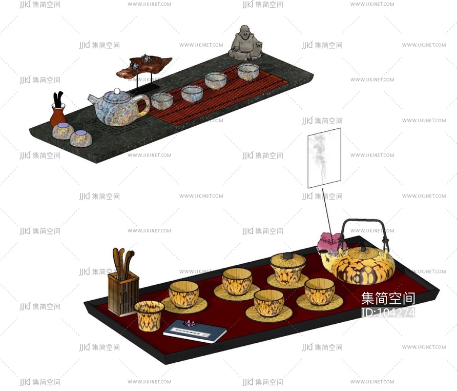 金油滴建盏茶具茶盘组合 su草图模型下载 [模型ID:104274]