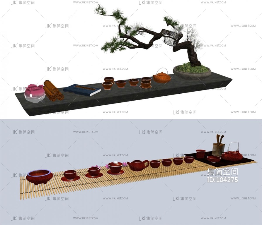 中式风格茶壶茶杯茶具 su草图模型su草图模型下载