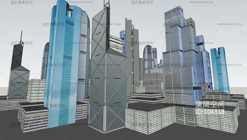 15城市建筑群 现代化高楼大厦 su草图模型下载 [模型ID:104318]
