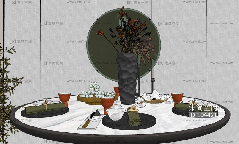 m210328-027新中式餐具,圆形餐桌, 花瓶,, 装饰画,挂画,墙饰,立体画,挂饰 (1)-0 su草图模型下载 [模型ID:104421]