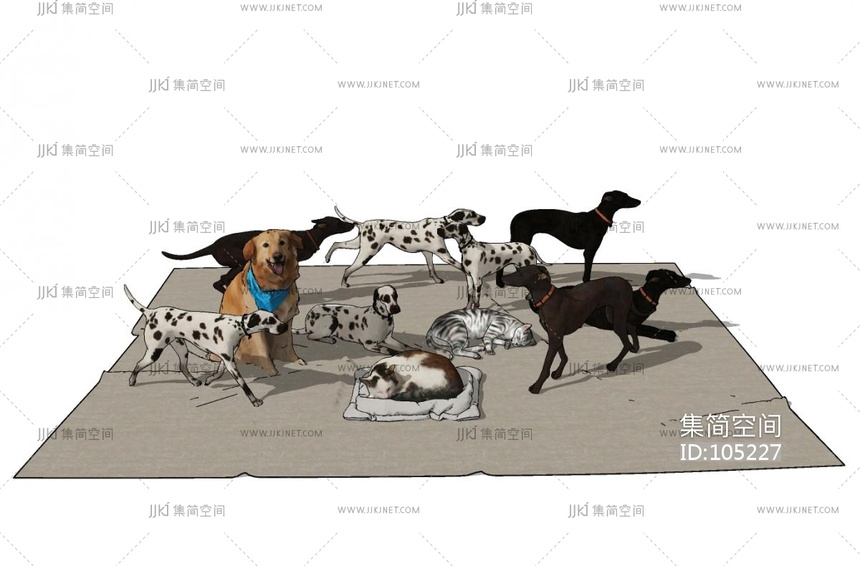 现代宠物狗,宠物猫,动物 su草图模型下载 [模型ID:105227]