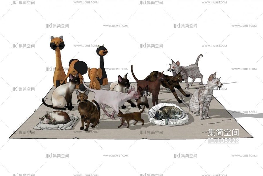 现代宠物狗,宠物猫,动物 su草图模型下载 [模型ID:105228]