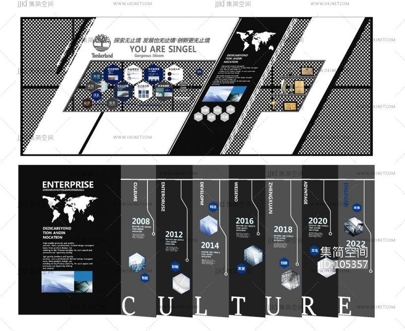 16现代企业文化展厅展板,文化墙荣誉墙发展简史展板世界地图 su草图模型下载 [模型ID:105357]