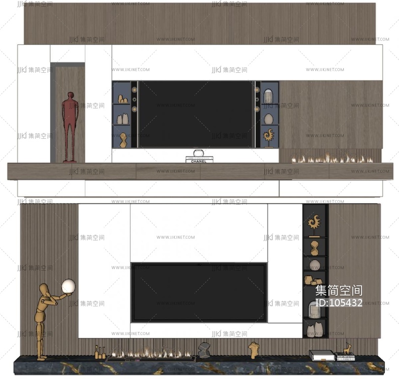 现代电视背景墙,壁炉火炉 su草图模型下载 [模型ID:105432]