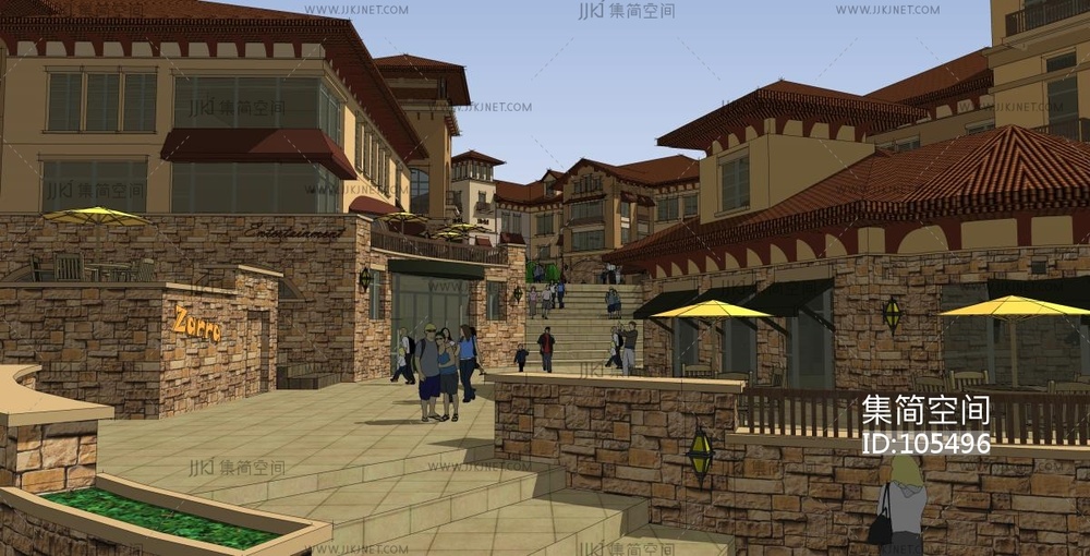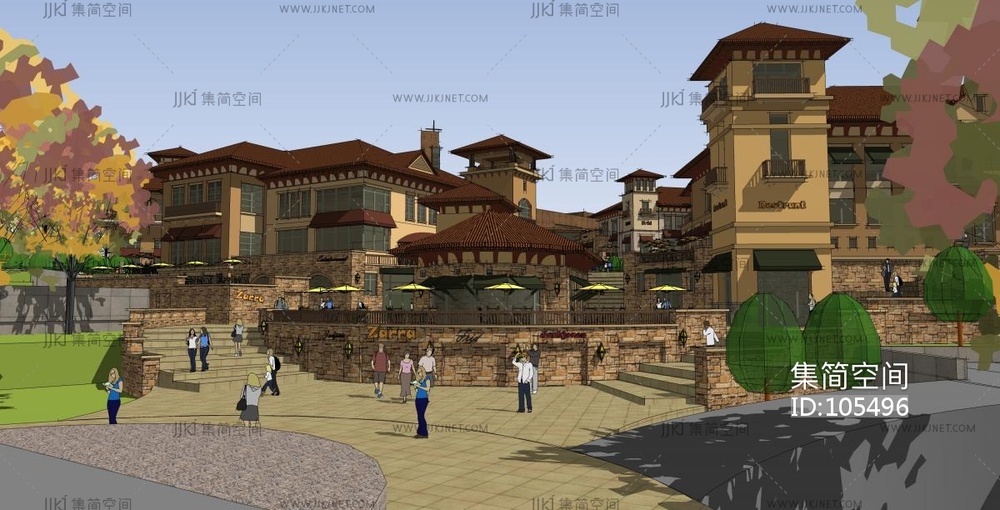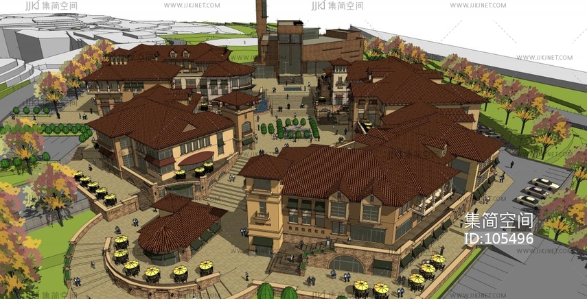 欧式建筑商业街,商业步行街 su草图模型下载 [模型ID:105496]