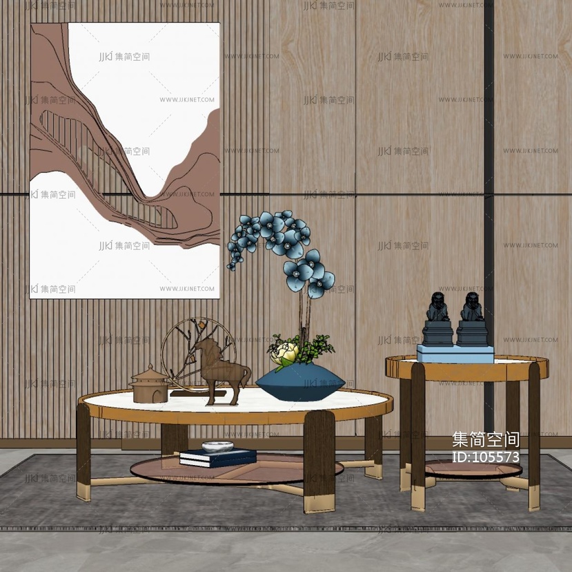 新中式茶几,圆形边几 su草图模型下载 [模型ID:105573]