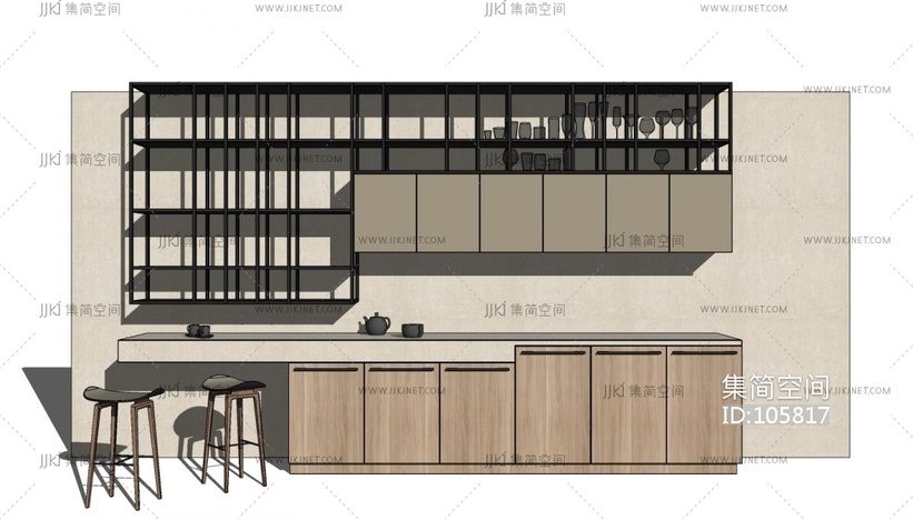 现代吧台,吧椅,厨房橱柜 su草图模型下载 [模型ID:105817]
