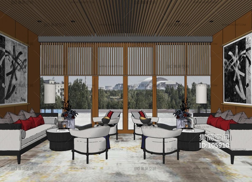 新中式售楼处会客区 su草图模型下载 [模型ID:105910]