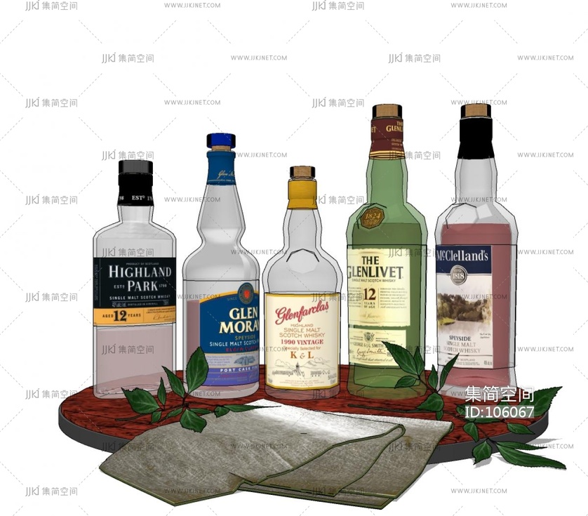 现代威士忌,酒水,洋酒,酒瓶子托盘 su草图模型下载 [模型ID:106067]