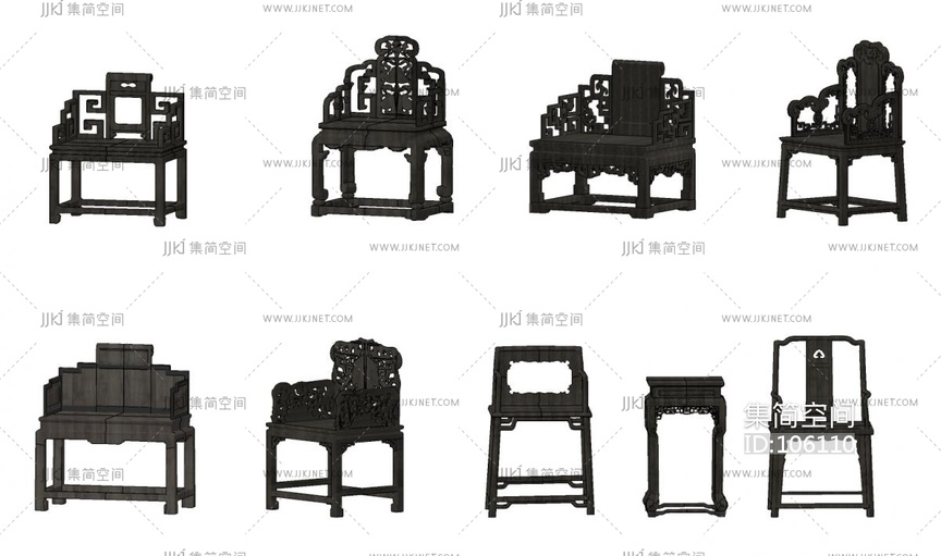 中式明清太师椅单椅 su草图模型下载 [模型ID:106110]