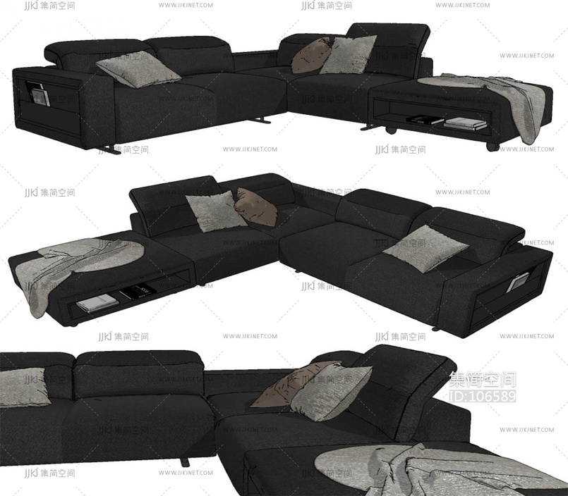 boconcept 现代转角多人沙发组合 su草图模型下载 [模型ID:106589]