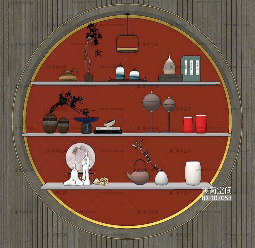 新中式装饰摆件,吊柜 su草图模型下载 [模型ID:107053]