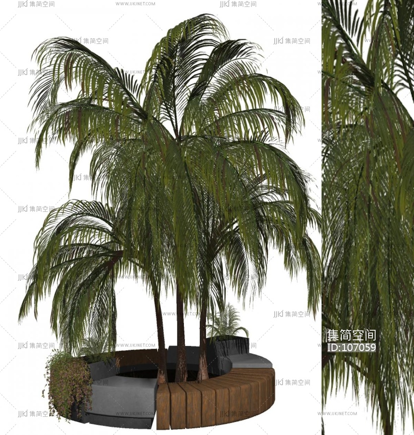 现代景观植物,圆形公共座椅 su草图模型下载 [模型ID:107059]