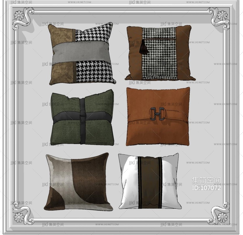 现代轻奢抱枕,靠包座垫组合 su草图模型下载 [模型ID:107072]