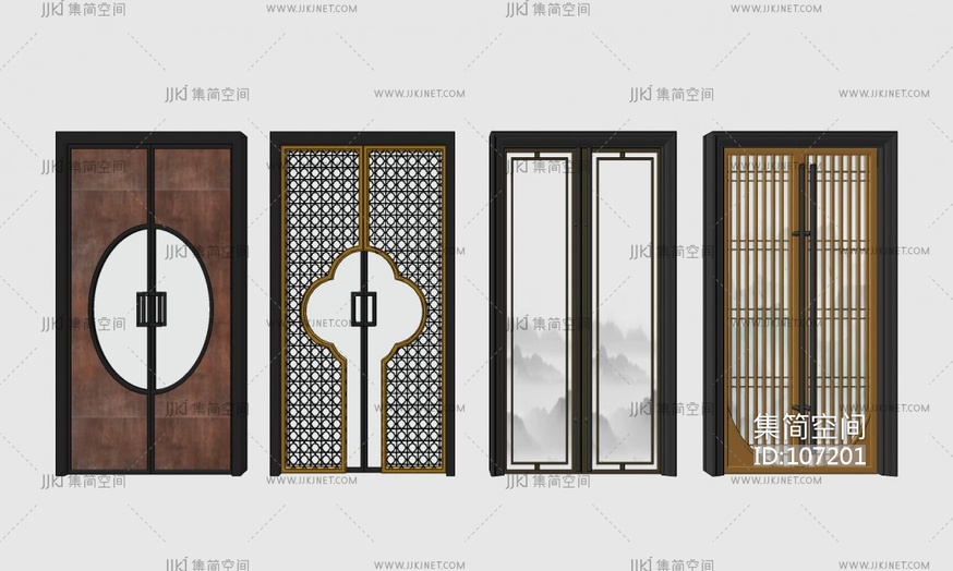 新中式推拉门 su草图模型下载 [模型ID:107201]