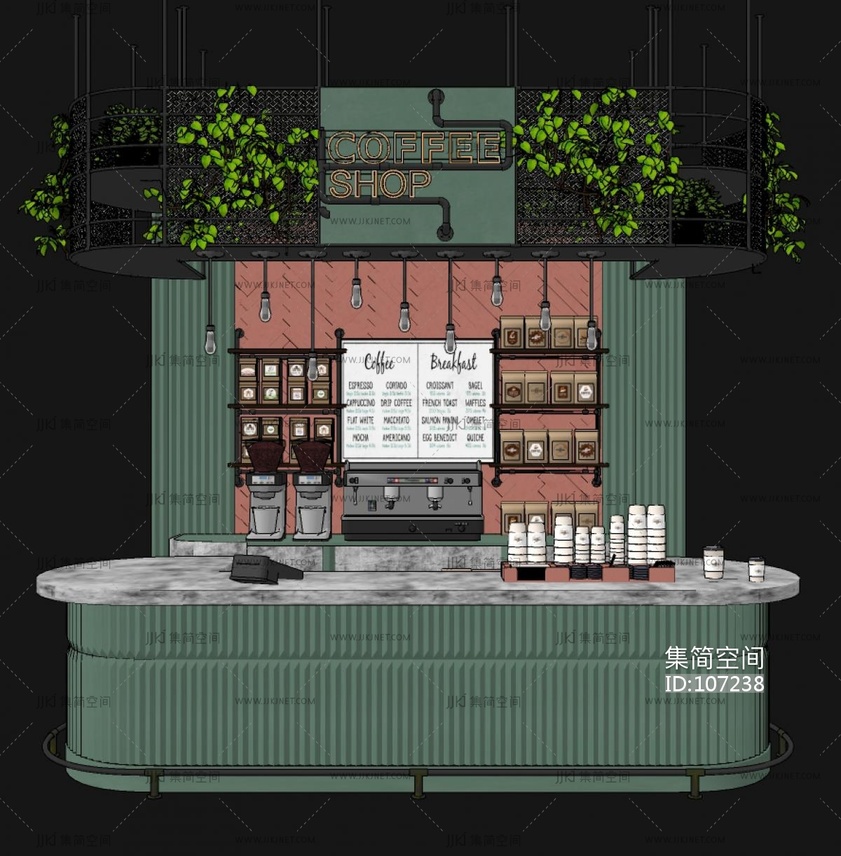 现代咖啡吧吧台, su草图模型下载 [模型ID:107238]