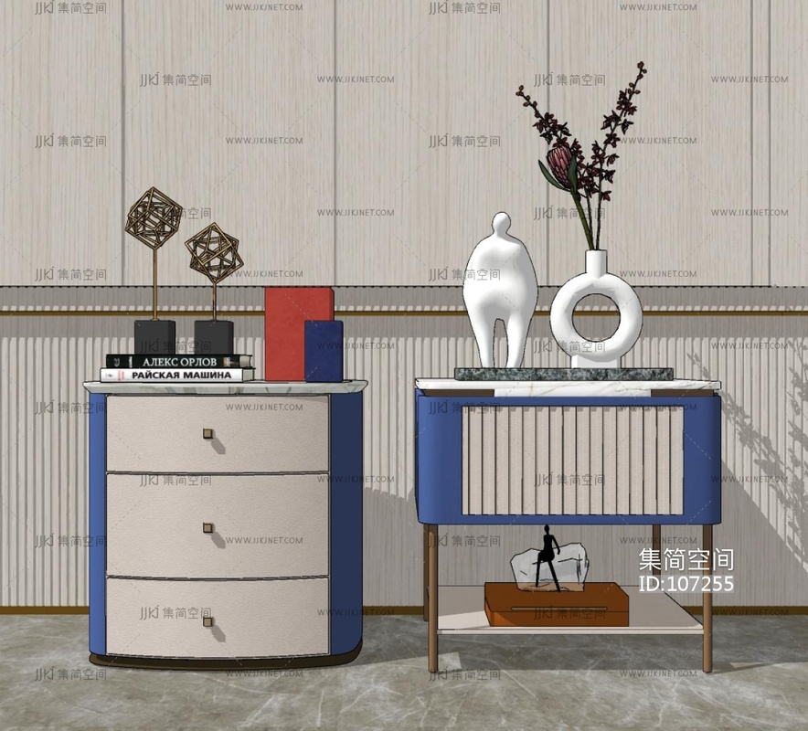 现代轻奢床头柜,花瓶,雕塑,工艺品摆件 su草图模型下载 [模型ID:107255]