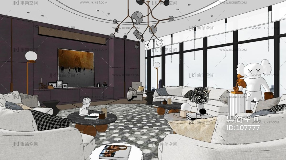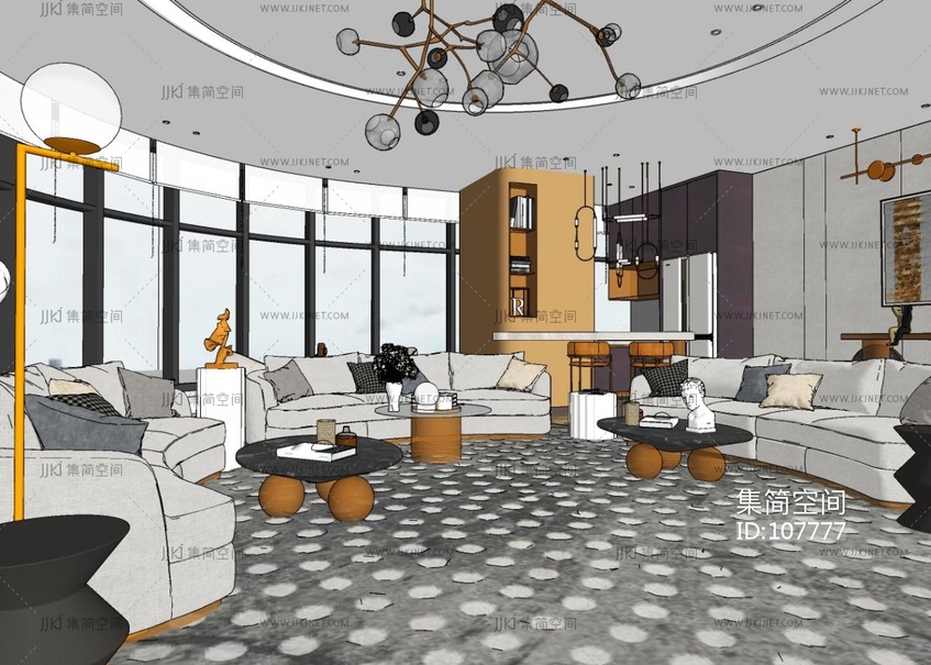 现代办公接待区 su草图模型下载 [模型ID:107777]
