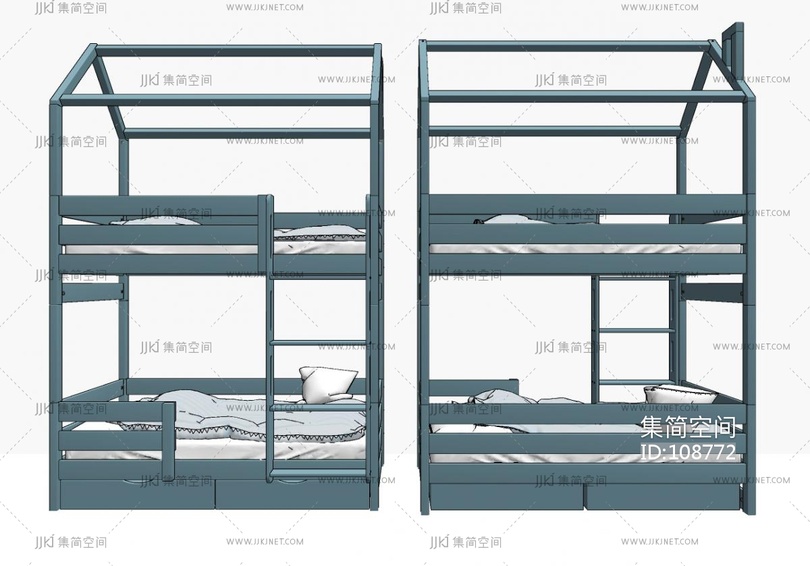 现代极简木架子上下铺双人床, su草图模型下载 [模型ID:108772]