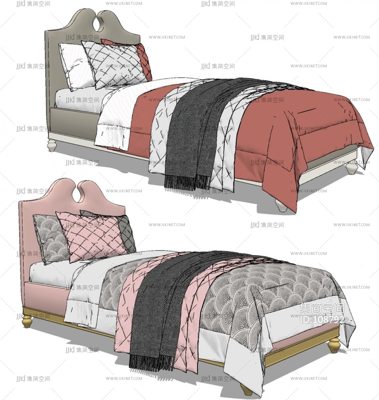 现代布艺单人床, su草图模型下载 [模型ID:108792]