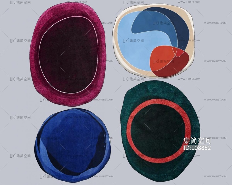 现代圆形地毯,地毯组合SU模型su草图模型下载